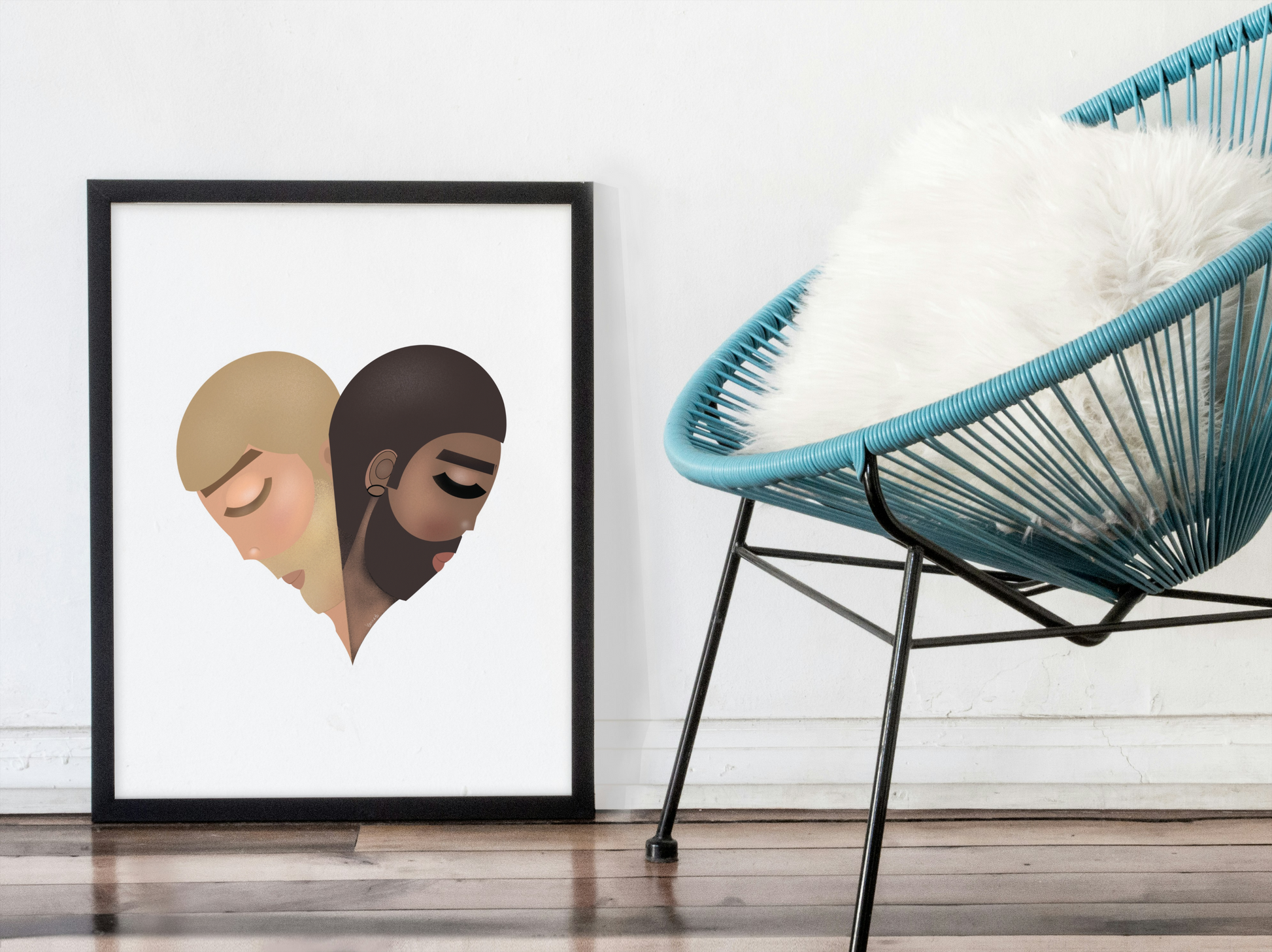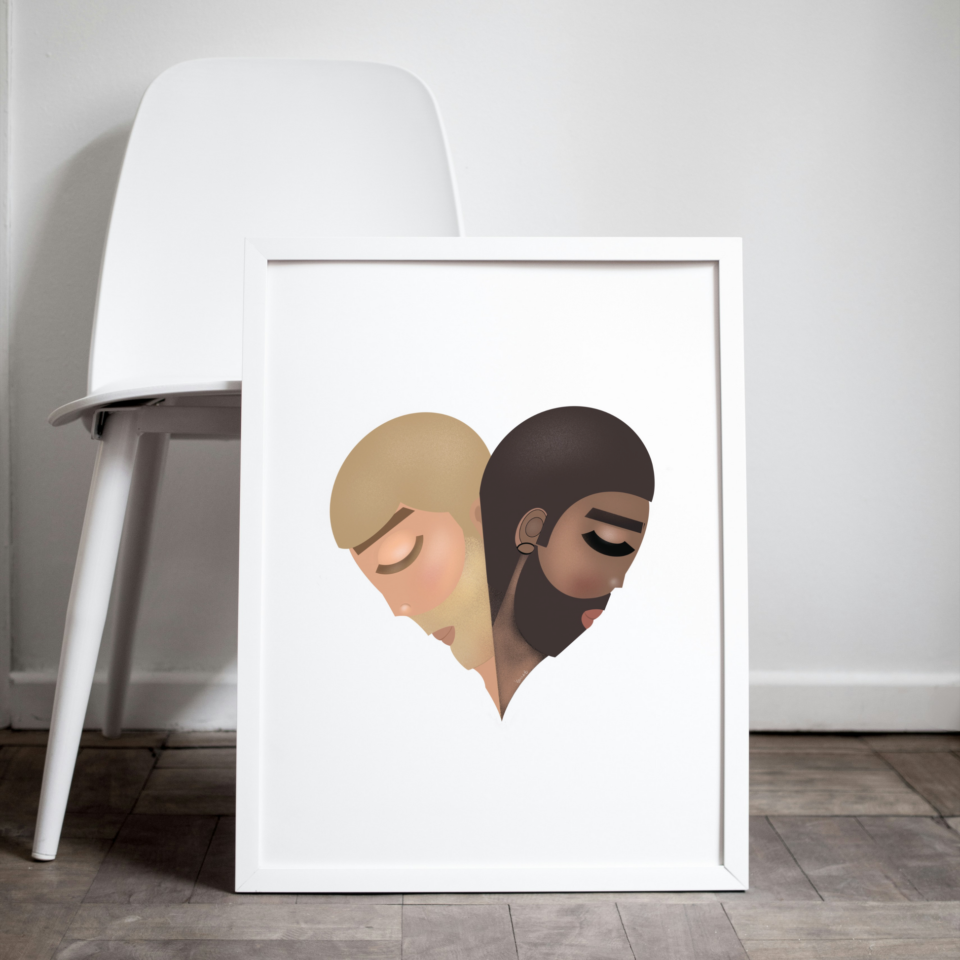 • Framed (White) — Clean matte white frame for bright, airy spaces